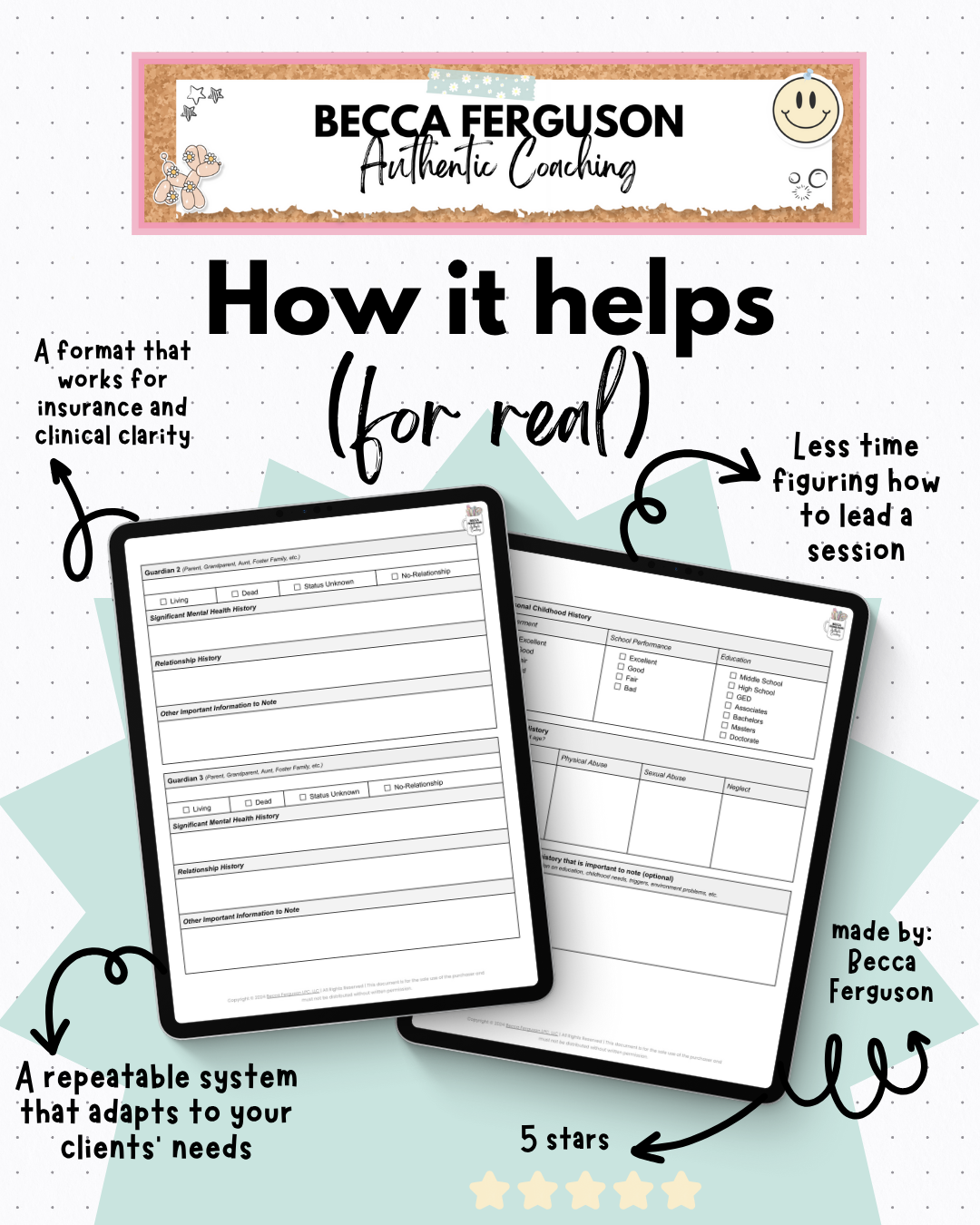 This isn’t just a form—it’s a framework. Created by a group practice owner who gets it, this template gives you the structure you need while still letting you stay human and flexible in session.