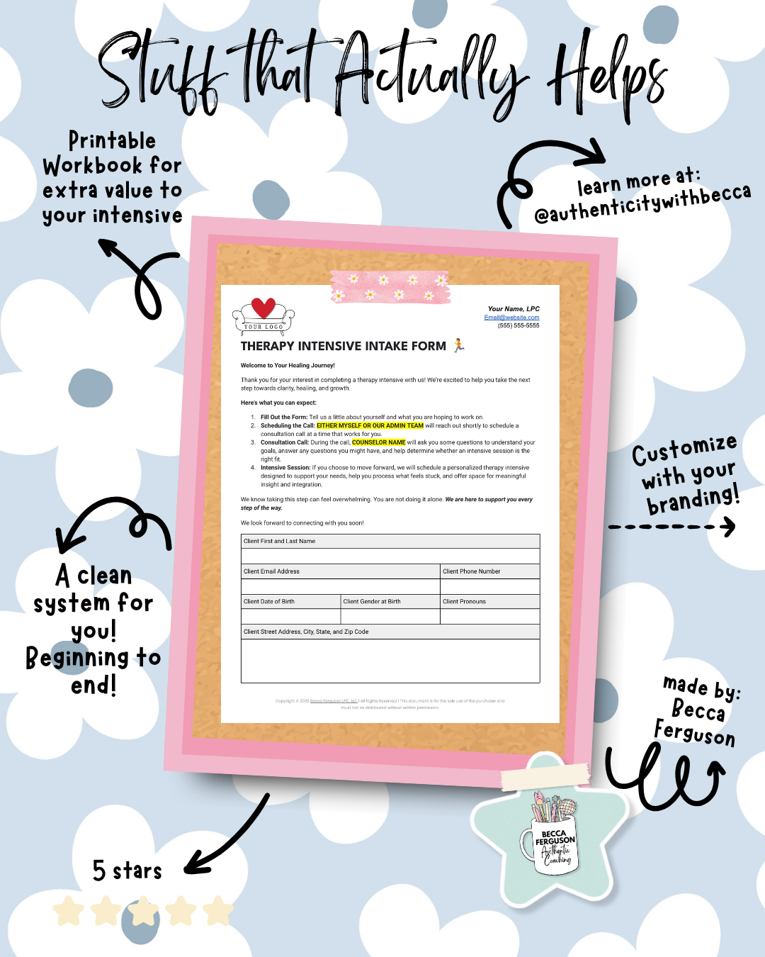 ✔️ Therapy Intensive Intake Form (Google Doc, Google Form, Printable PDF, Canva header template)