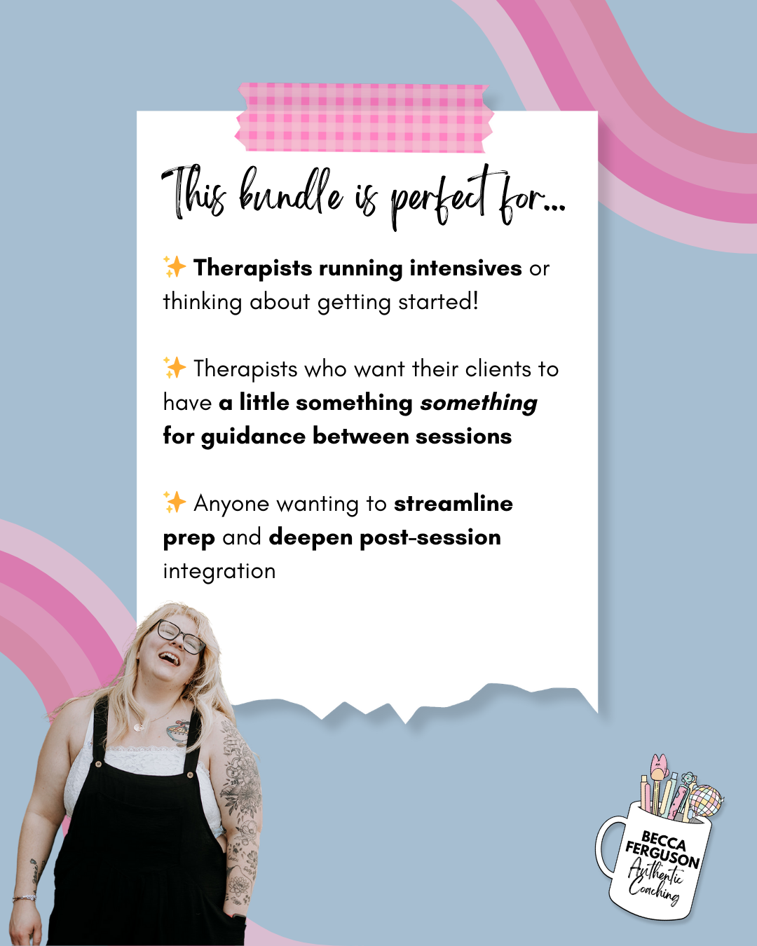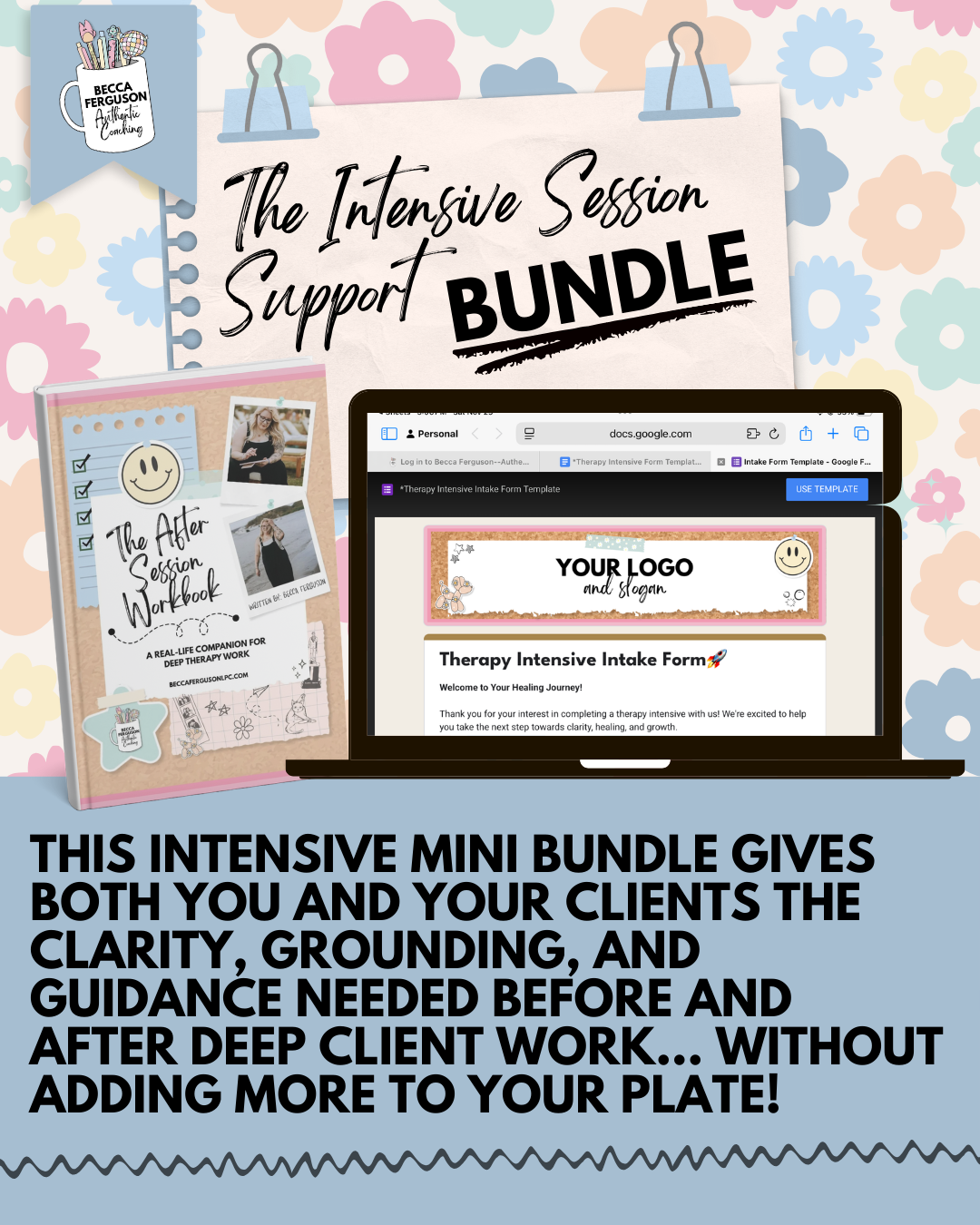 But here’s the thing: intensives take a lot of emotional bandwidth. Without the right resources, therapists end up glued to their phone all weekend, checking in on clients, worrying about them, and trying to hold their emotional process in real time. 🔥