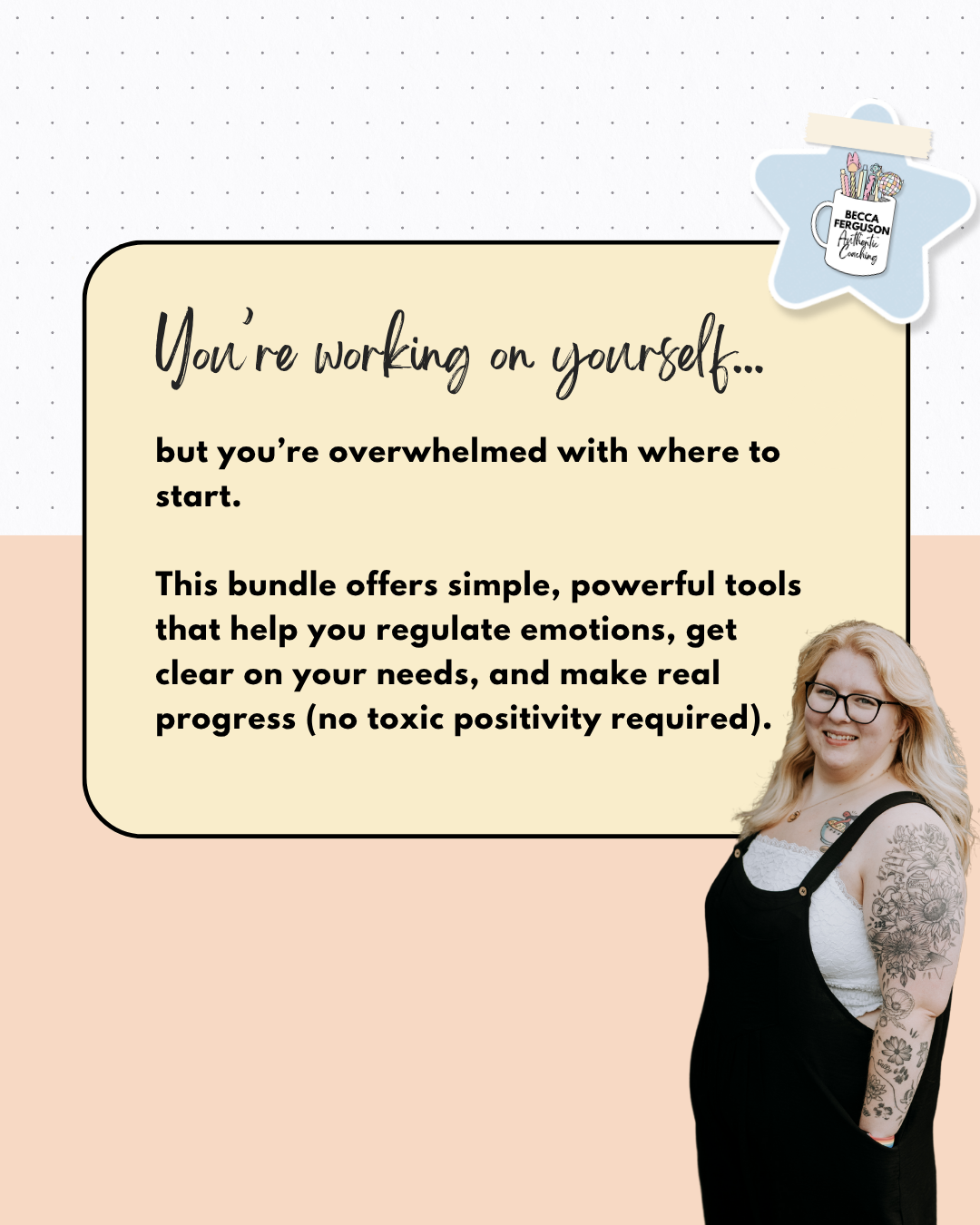 This bundle is perfect for anyone ready to take charge of their emotional health, create more balance, and set themselves up for success. Whether you’re an individual looking for personal development or a therapist supporting your clients’ growth, this bundle will give you the tools you need to thrive. 💪