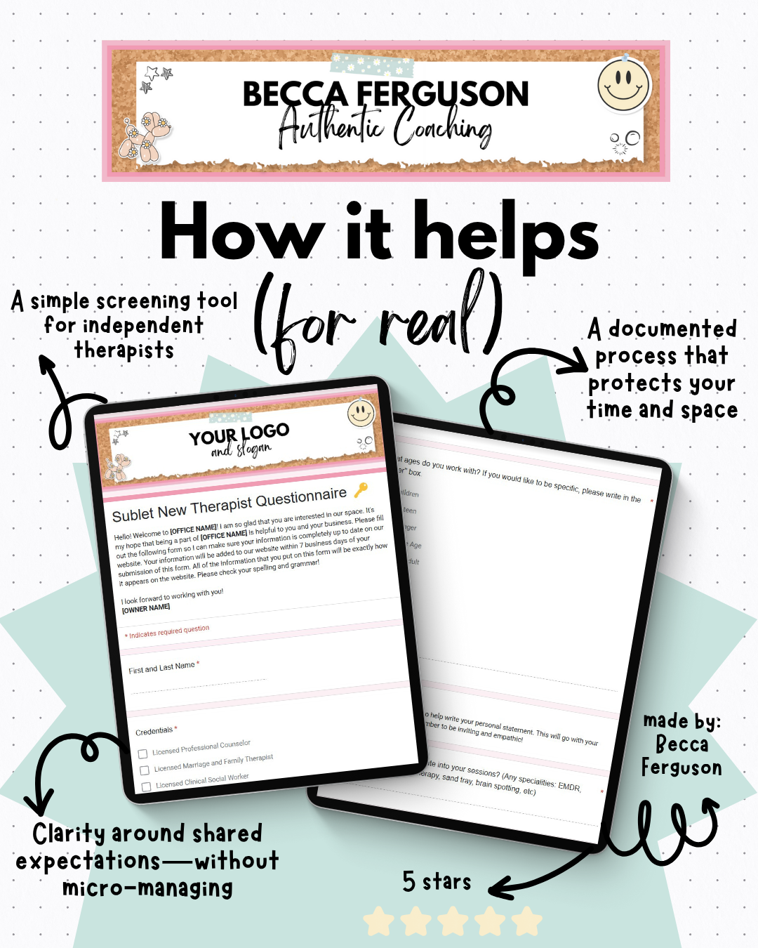 This template is perfect for practice owners who want to sublet space to independent contractors or other therapists while maintaining a cohesive office environment. It’s an efficient, professional way to get all the details you need without unnecessary back-and-forth!