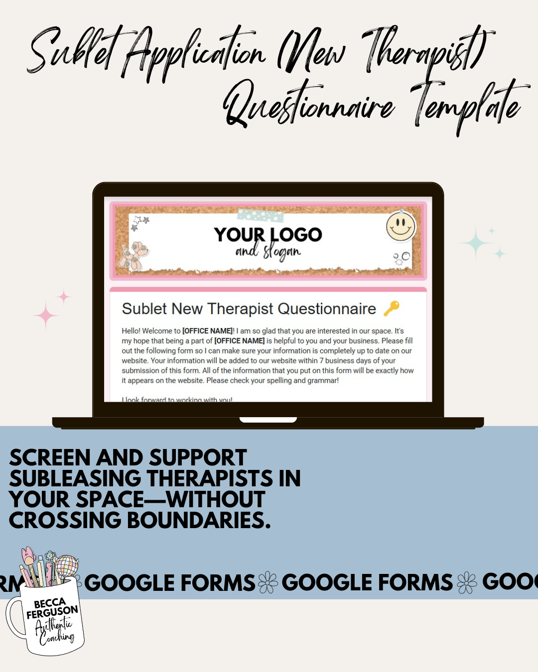 Streamline your subletting process with this customizable questionnaire, designed to help you find the best therapists for your practice space.