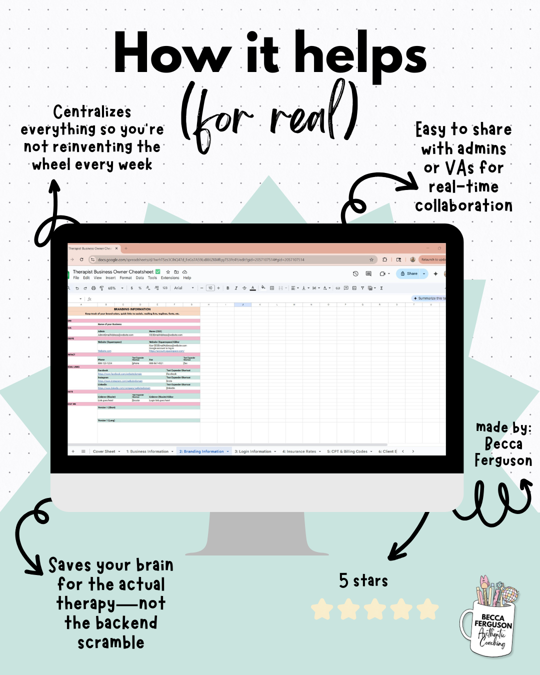 This tool was built by a therapist (hi, I’m Becca!) who knows how overwhelming the business side of therapy can feel. It’s here to make your life easier—whether you’re solo or running a whole team.